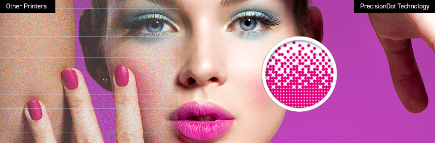 Other printers focus on dots per inch (DPI), but good printing is about dot quantity and quality. Our PrecisionDot Technology works to provide incredibly precise and unique dots to give you finer details, smoother gradations, and less graininess.